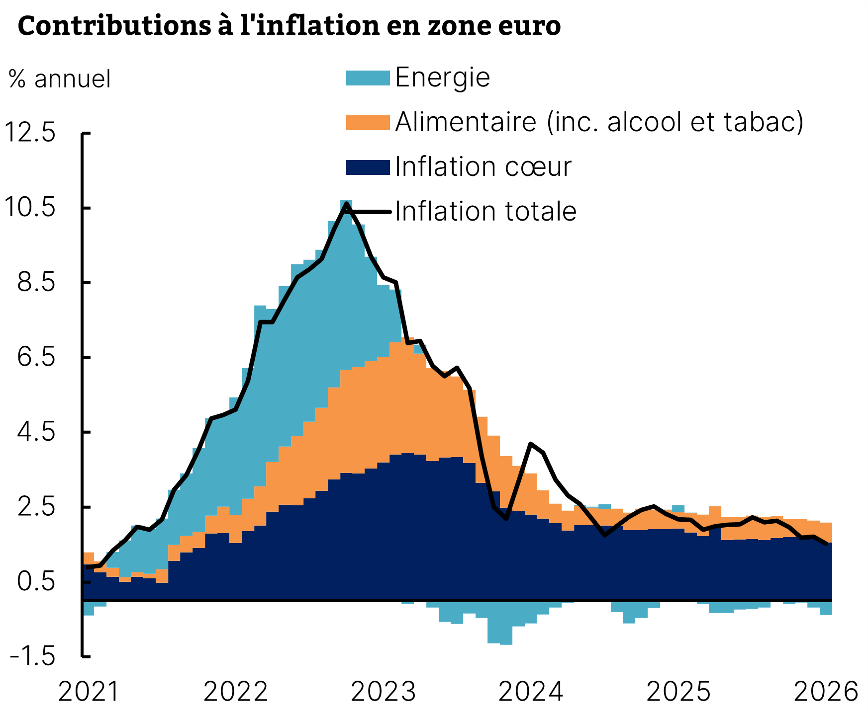 La grande démission. Plusieurs éléments perturbateurs pourraient venir troubler ce ciel bleu en 2026. D’abord, le Président Trump a acté la nomination de K. Warsh à la tête de la Réserve Fédérale au terme du mandat de J. Powell en mai. S’il était le candidat le plus « orthodoxe », avec un CV solide et une expérience de premier plan à la Fed entre 2006 et 2011, il s’est distingué par sa proximité avec le secteur financier et sa réticence au Quantitative Easing et à un soutien jugé excessif à l’économie. Ses moindres mots vont désormais être scrutés et interprétés, à un moment où le marché actions américain est fragile et dépendant d’un environnement de taux favorable. La surprise récente est que C. Lagarde pourrait elle aussi quitter son poste à la tête de la BCE avant son terme en 2027. Elle imiterait ainsi le Gouverneur de la Banque de France F. Villeroy de Galhau qui quittera aussi prématurément ses fonctions en juin, ce qui introduit une incertitude en matière de politique monétaire européenne. Il n’est pas interdit de penser que ces démissions ont un rapport avec les élections présidentielles de 2027 et la crainte de laisser le prochain Président français nommer ces fonctions essentielles.